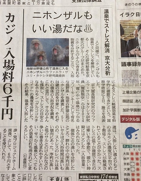 京都大学が発表した研究で「人と同様に、ニホンザルも温泉でストレスを解消している」というニュースが4月にありました。