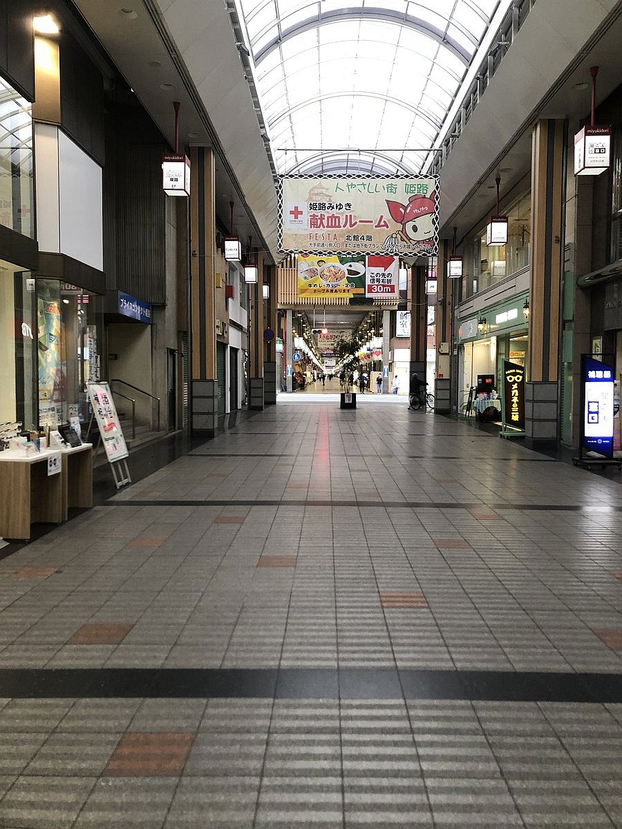 グランフェスタ(姫路駅地下)も軒並みシャッターが下りてシーンとしています